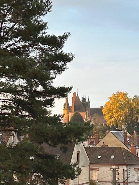 Très bel extérieur de 1 563 m² accessible par un portail et pouvant permettre de garer plusieurs véhicules, composé de trois terrasses, d’un jardin arboré et d’une magnifique vue sur le château de Gien.